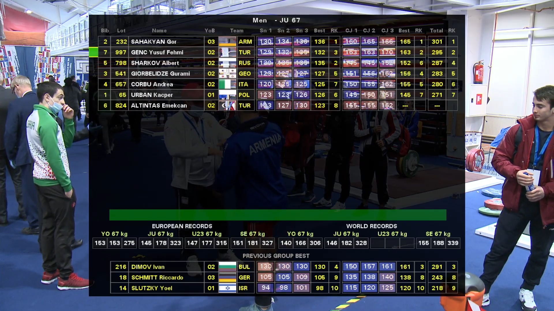 W kategorii 67 kg do lat 20 jako pierwszy z Polaków wystąpił Kacper Urban, który uzyskując 271 kg w dwuboju (126+145) uplasował się na miejscu siódmym. Zwyciężył Ormianin Gor Sahayan, z wynikiem 301 kg (136+165).