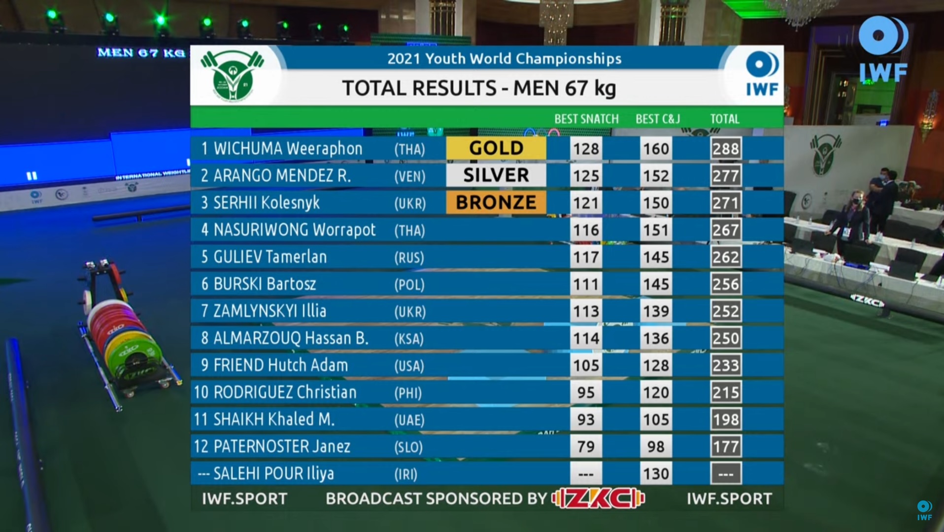 Wyniki live: https://www.iwf.net/scoreboard/graphics/get_scoreboard_IWF.html