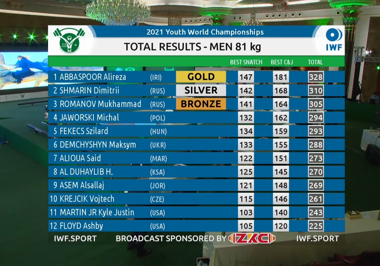 Wyniki live: https://www.iwf.net/scoreboard/graphics/get_scoreboard_IWF.html