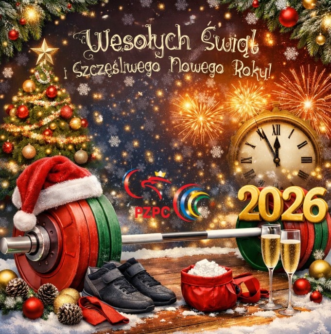Z okazji Świąt Bożego Narodzenia oraz Nowego 2026 Roku, składam Wam oraz Waszym Rodzinom najserdeczniejsze życzenia! Składam je w imieniu własnym, Zarządu Polskiego Związku Podnoszenia Ciężarów oraz pracowników Biura PZPC i całego ciężarowego środowiska.
