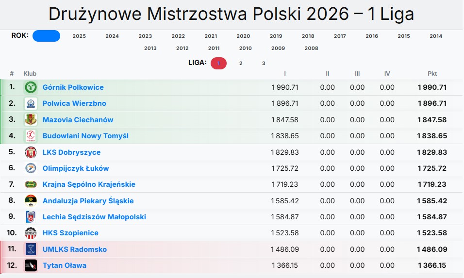 Inauguracja wypadła dobrze! Za nami turnieje I rundy Drużynowych Mistrzostw Polski. Walka o ligowe punkty w ramach I i II ligi, pierwsze rekordy rekordy Polski w nowych wagach, solidne rezultaty kadrowiczów. Po I rundzie I ligi na prowadzeniu KPC Górnik Polkowice, przed Polwicą Wierzbno I i Mazovią Ciechanów. W II lidze na czele ekipa Polwicy.