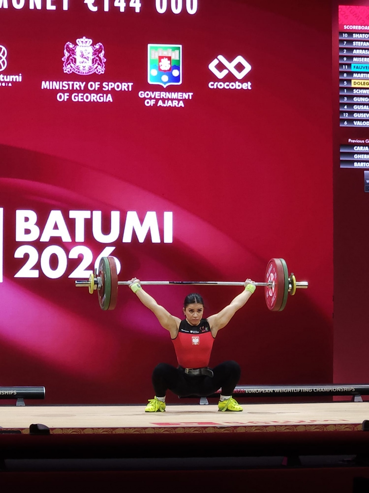 Zawodniczka LKS EkoSport Siedlce uzyskała w dwuboju 227 kg, co jest znakomitym wynikiem i rekordem Polski! W rwaniu, w najlepszej próbie zaliczyła 103 kg - piąty rezultat boju. W podrzucie 124 kg dało pozycję szóstą. Tak jak wynik dwubojowy – 227 kg. Pięć podejść zaliczonych, 10 razy poprawki rekordów Polski! Zdecydowanie najlepszy występ do tej pory z naszej 12-osobowej ekipy (k + m) w Batumi! Serdecznie gratulujemy! Dwa pierwsze miejsca zajęły sztangistki spod szyldu AIN, brąz – Niemcy! Medalistki w kat. 69 kg: 1. Siuzanna Valodzka (AIN) 237 kg (108 kg + 129 kg); 2. Zarina Gusalova (AIN) 232 kg (105 kg + 127 kg); 3. Lisa Marie Schweizer (Niemcy) 231 kg (109 kg + 122 kg).