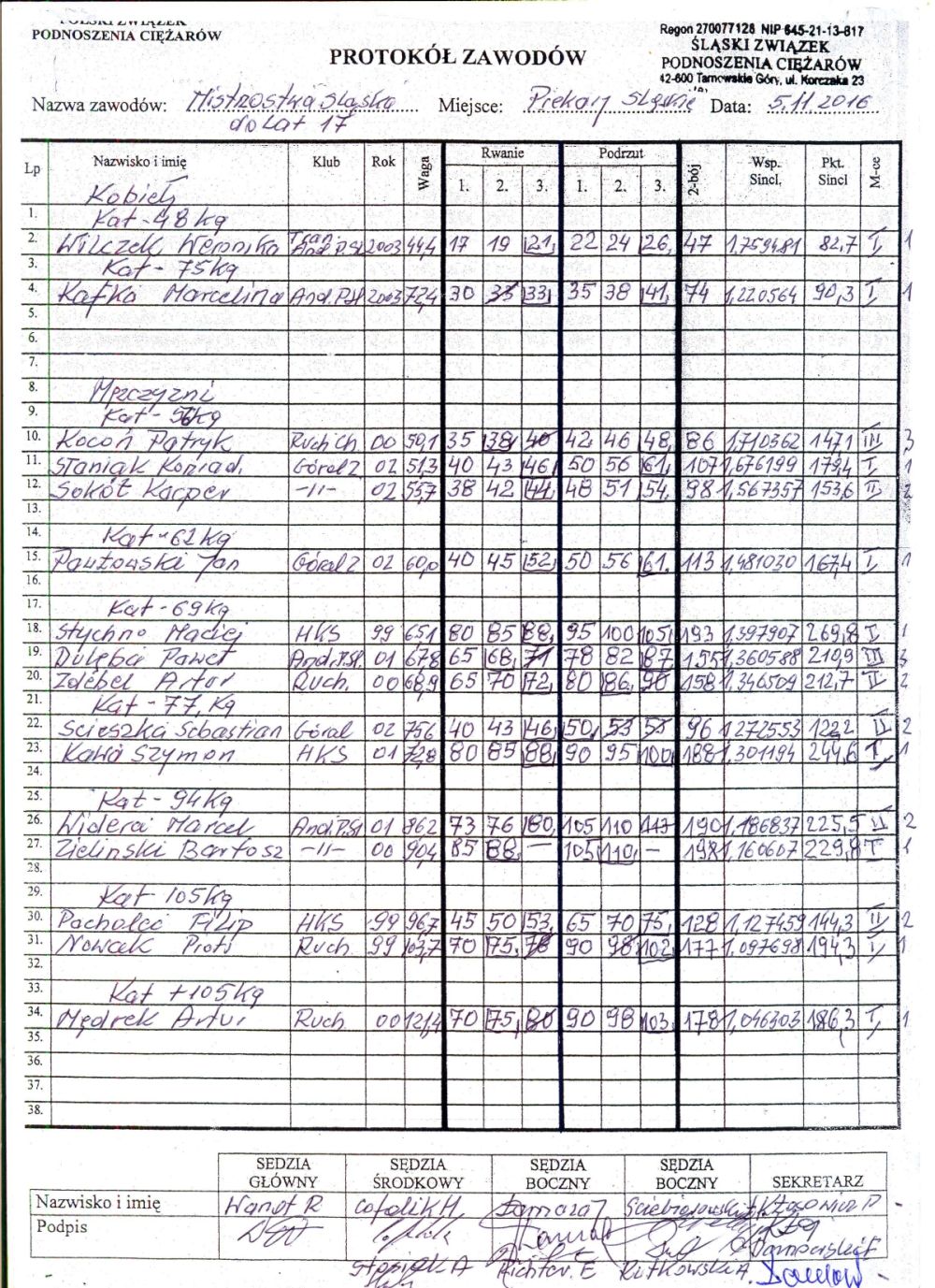 W Piekarach Śląskich odbyły się Mistrzostwa Śląska Juniorek i Juniorów do lat 17 (2 zawodniczki i 14 zawodników). Znakomicie spisali się młodzi sztangisci TRANSBED GKS "Andaluzja" Piekary Śląskie w Mistrzostwach Śląska U17. Wsród dziewcząt tytuly mistrzowskie wywalczyły Weronika Wilczek - w kat.48 kg , oraz Marcelina Kafka - w kat. 75 kg. Poza konkursem swietnie zaprezentowały się Roksana Bukarz oraz Emilka Franielczyk. Najlepszą zawodniczką Mistrzostw Śląska została Marcelina Kafka z wynikiem 90,3 pkt,