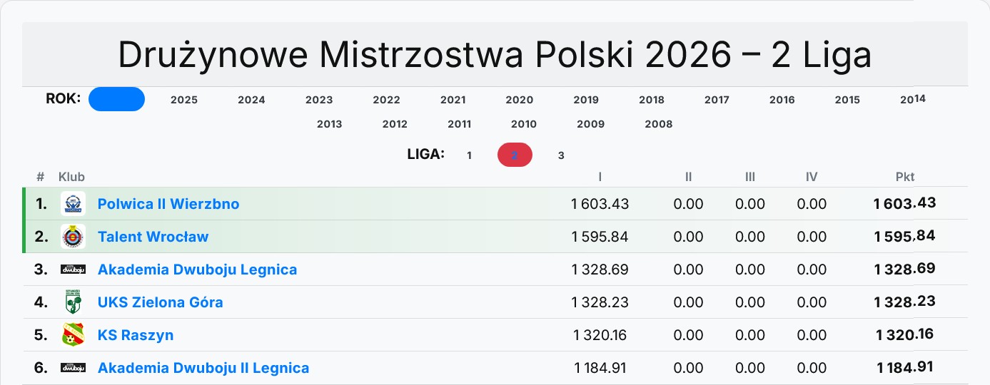 Tabele - Drużynowe mistrzostwa Polski w podnoszeniu ciężarów